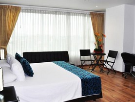 El Hotel Santa Fe Real se halla a solo 15 minutos en coche del aeropuerto internacional El Dorado y a 5 minutos a pie de la embajada de los Estados Unidos, en Bogotá. El centro de convenciones Corferias está a solo 1 calle. Hay conexión WiFi gratuita en todo el establecimiento. El Hotel Santa Fe Real presenta una decoración elegante de estilo urbano y sus habitaciones están equipadas con baño privado completo con artículos de aseo gratuitos, minibar, caja fuerte y TV vía satélite de pantalla plana. Las suites cuentan con cama extragrande y bañera de hidromasaje. El establecimiento ofrece a diario y de forma gratuita un desayuno americano completo que incluye fruta tropical y café colombiano. El restaurante prepara almuerzos ligeros y aperitivos. Además, cerca del establecimiento hay aparcamiento público gratuito. El Hotel Santa Fe Real dispone de servicio de recepción 24 horas e instalaciones para reuniones. Este hotel se encuentra a 10 minutos en coche del parque Simón Bolívar, un lugar popular donde se celebran conciertos y espectáculos al aire libre. Teusaquillo es una opción genial para los viajeros interesados en Negocios, Cultura y Compras.