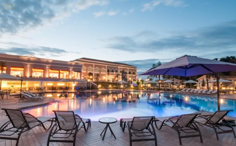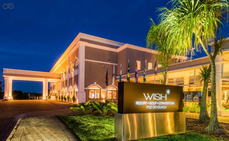 El Wish Resort Golf Convention Foz do Iguaçu. El Wish Resort Golf Convention Foz do Iguaçu es un establecimiento de 5 estrellas con una gran piscina y conexión WiFi gratuita, y está rodeado de un jardÃn frondoso a 5 km del parque nacional Iguazú. Las habitaciones del Wish Golf Convention Resort presentan una decoración elegante y sofisticada con tonos suaves y mobiliario clásico de madera. Los alojamientos cuentan con aire acondicionado, TV y minibar, y algunos de ellos ofrecen ventanales con vistas al jardÃn. El mostrador de información turÃstica puede organizar excursiones a las cataratas del Iguazú. Los huéspedes también disponen de un centro de fitness y una bañera de hidromasaje, y pueden practicar senderismo en el parque nacional. Cada mañana se sirve un desayuno buffet que incluye fruta fresca, panes y productos dulces. El restaurante ofrece especialidades locales y platos de cocina internacional. El hotel se encuentra cerca de la entrada y del lado argentino del parque Iguazú. El establecimiento está a medio camino entre el centro de Foz do Iguaçu y el aeropuerto de la ciudad, situado a 15 minutos en coche.