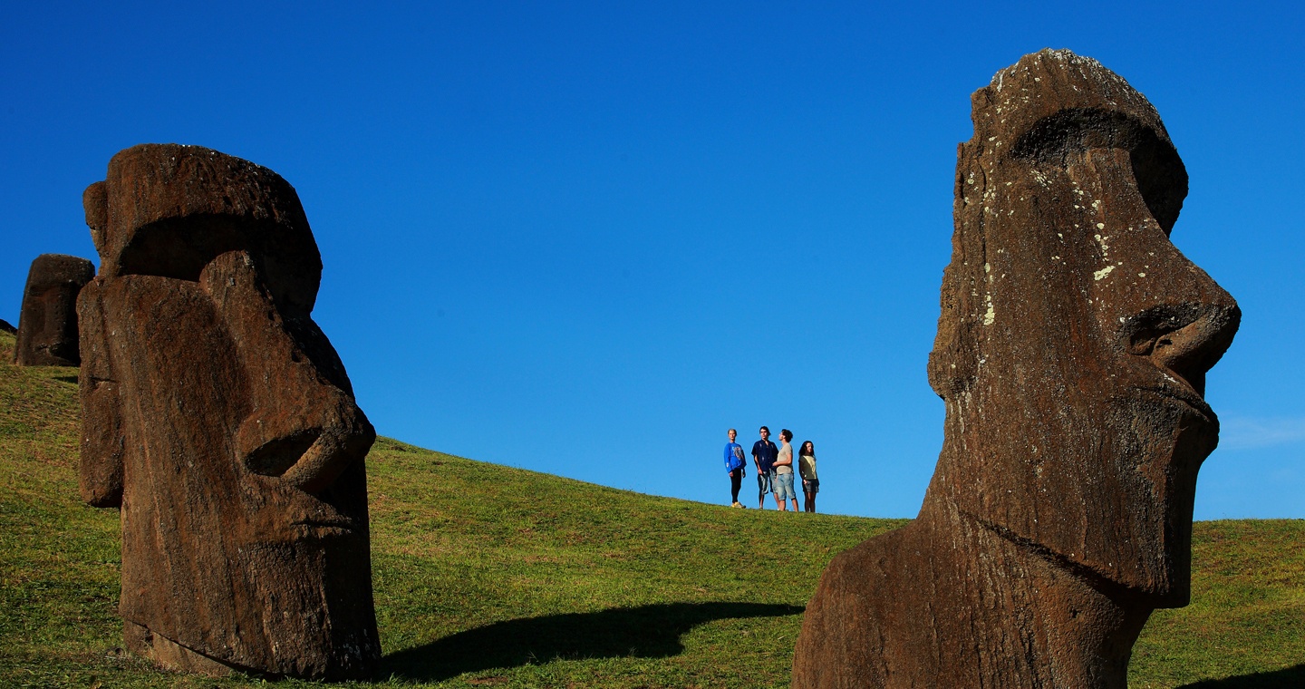 Conoce los mudos espectadores del pasado de rapa nui: los mundialmente famosos moai, gigantes esculturas talladas en ceniza compacta. En toda la isla existen más de 1.000 ejemplares, 400 de ellos se encuentran en las canteras del volcán Rano Raraku.